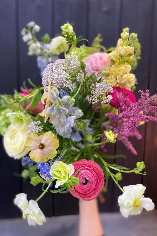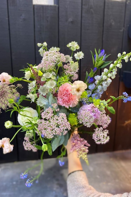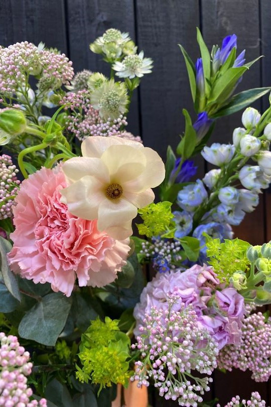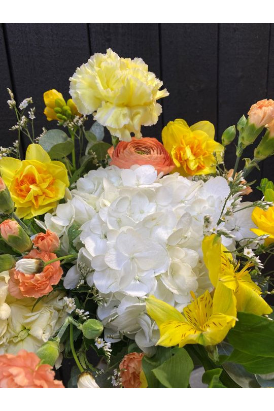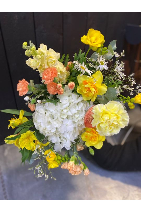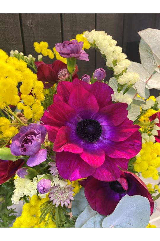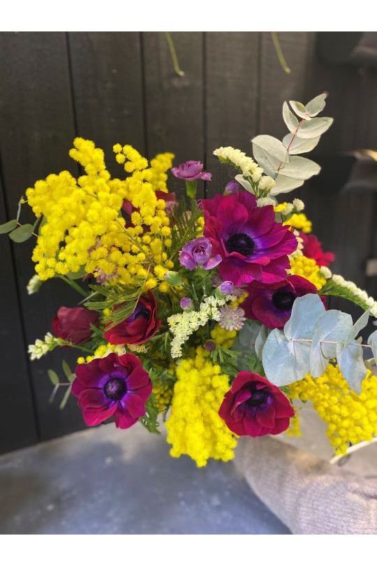 Le Bouquet de saison est composé exclusivement de fleurs de saison. La composition et la couleur des bouquets peut aussi varier d’un bouquet à l’autre en fonction des arrivages quotidiens.