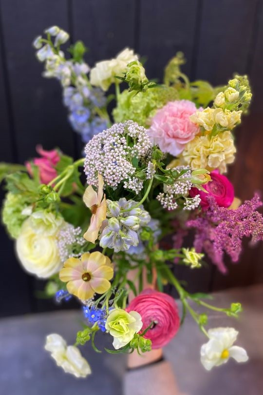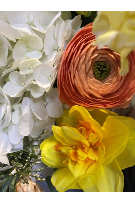 Pensée avec goût et sensibilité, cette création florale raconte une histoire éphémère, celle des fleurs du moment, de leurs couleurs, de leurs textures et de leur parfum.