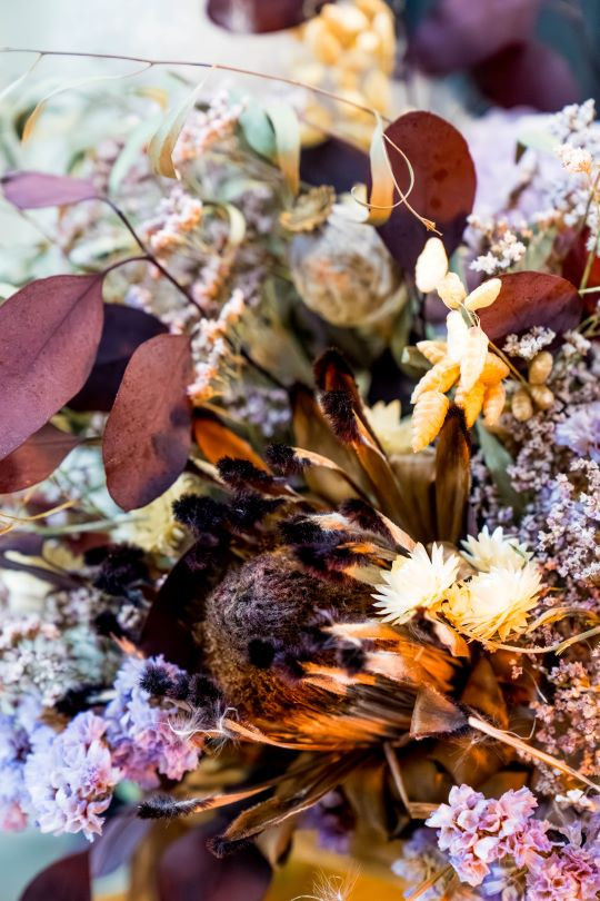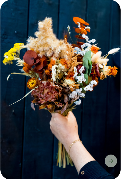 Toutes les fleurs qui composent ce bouquet sont 100% naturelles et sont séchées dans notre boutique ou directement chez nos producteurs. Certains végétaux peuvent varier selon les arrivages.