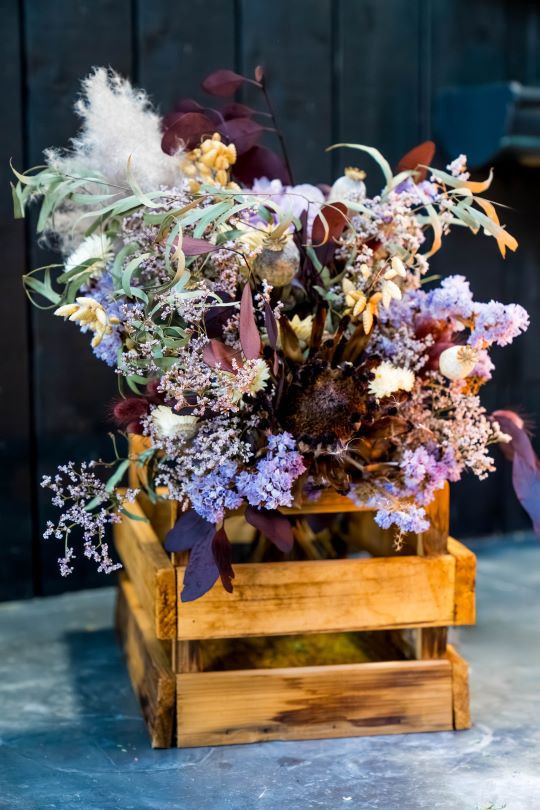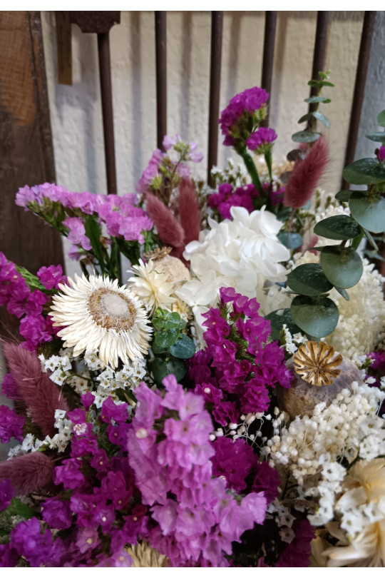 Ces bouquets de fleurs séchées sont composées de végétaux séchées et stabilisées. Elles se conservent dans leur forme sans se faner.