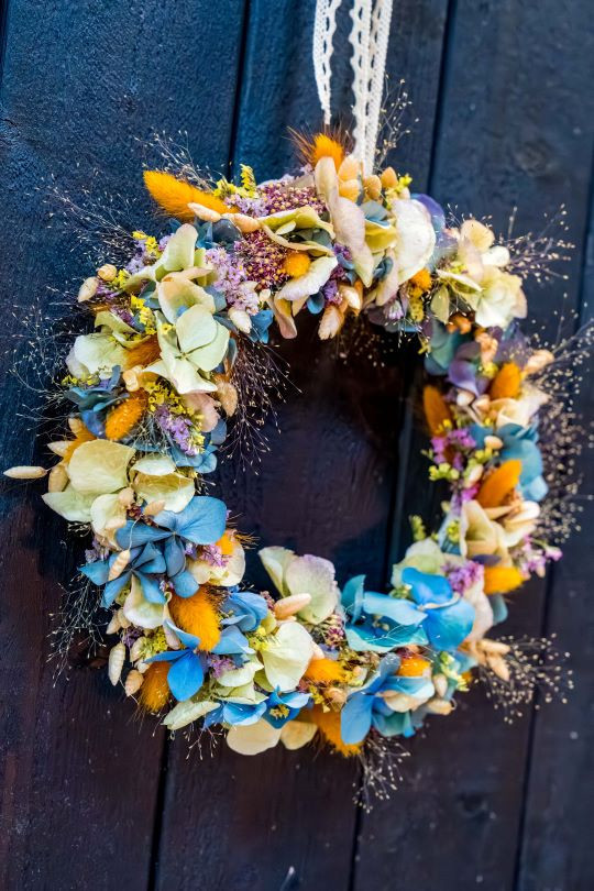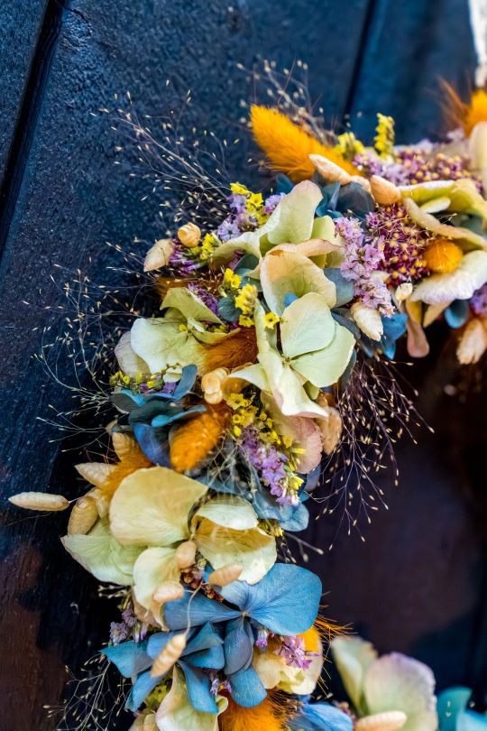 Toutes les fleurs qui composent cette couronne sont 100% naturelles et sont séchées dans notre boutique ou directement chez nos producteurs. Certains végétaux peuvent varier selon les arrivages.